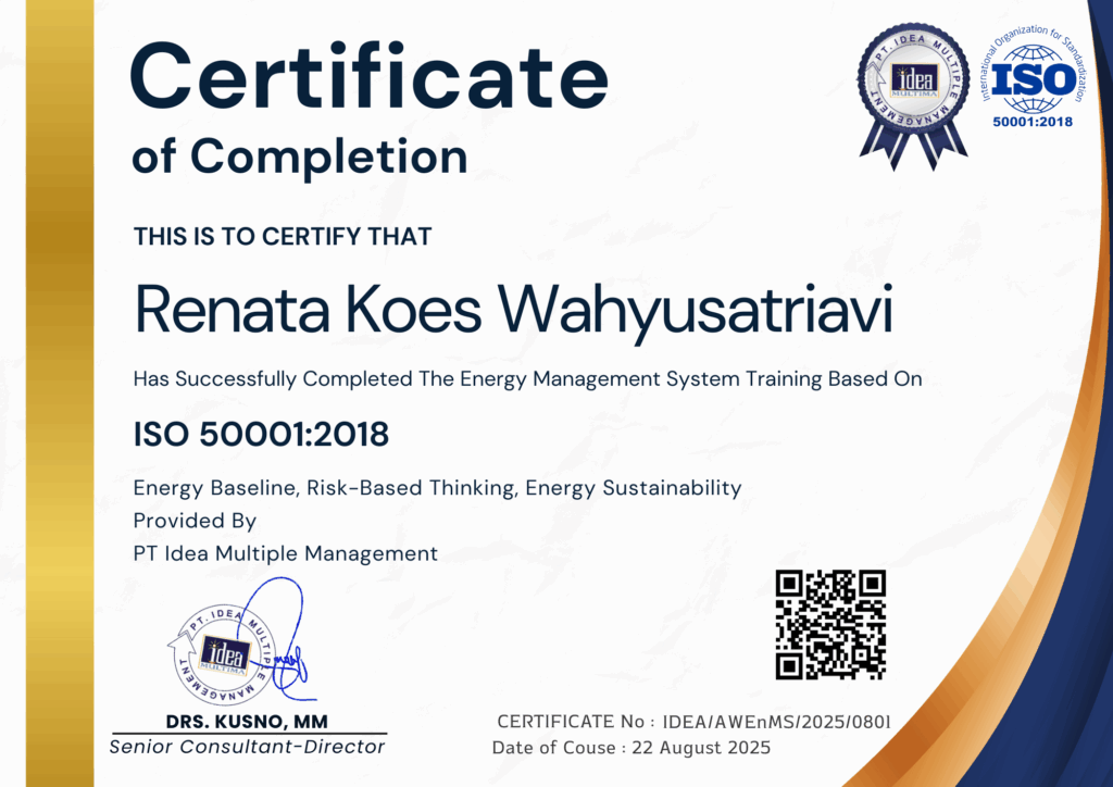Topik sertifikat : Energy Management System Based on ISO 50001:2018