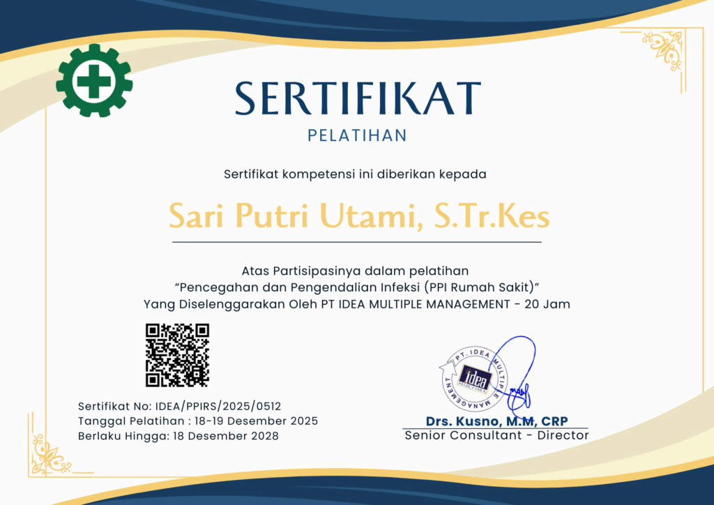 Topik sertifikat : Pelatihan “Pencegahan dan Pengendalian Infeksi (PPI Rumah Sakit)” – 20 Jam