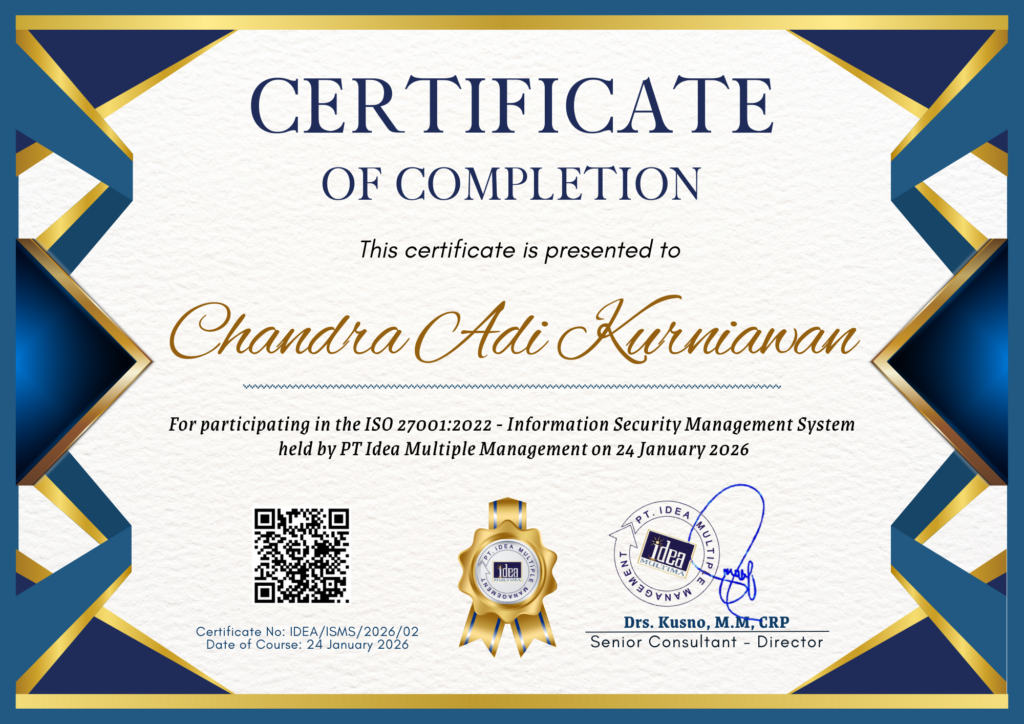 Nomor sertifikat :  IDEA/ISMS/2026/02
